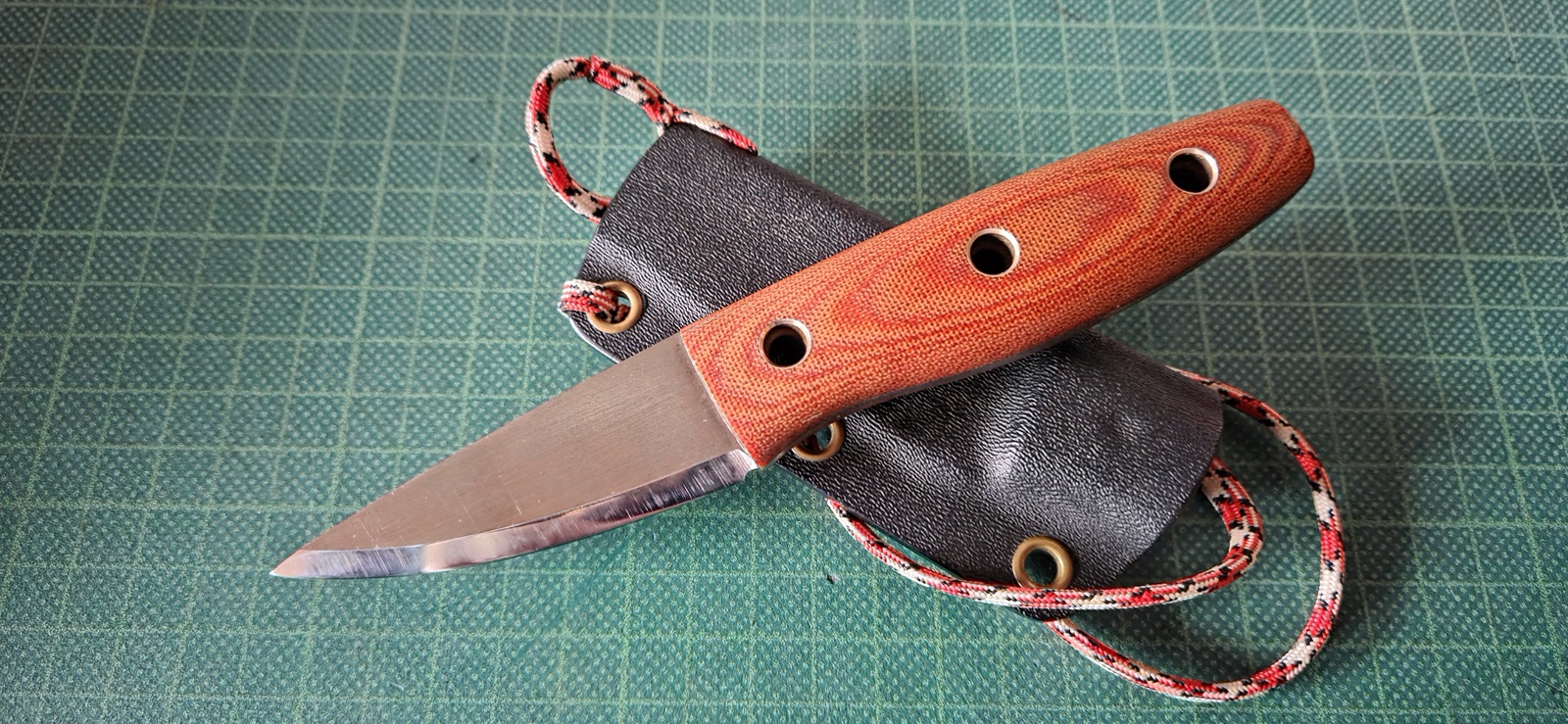 neuwertig, getrage, O1, Micarta, Hohlnieten, Kydexscheide, Klinge 7,1cm, Griff 10,1cm