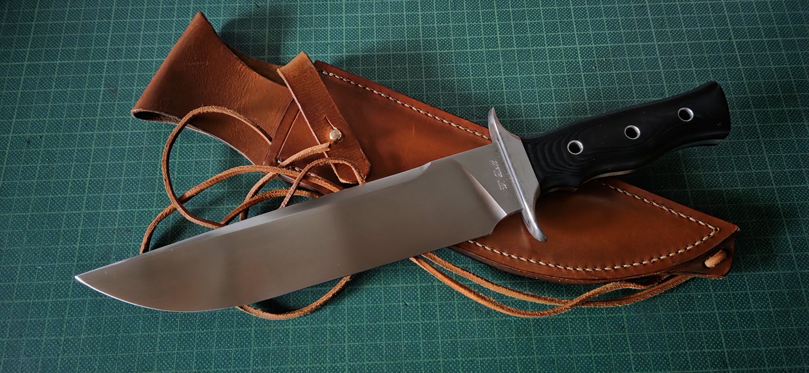 getragen, RWL, Edelstahlguard, Micarta, Lederscheide, Klinge 23,5cm, Griff 12,3cm