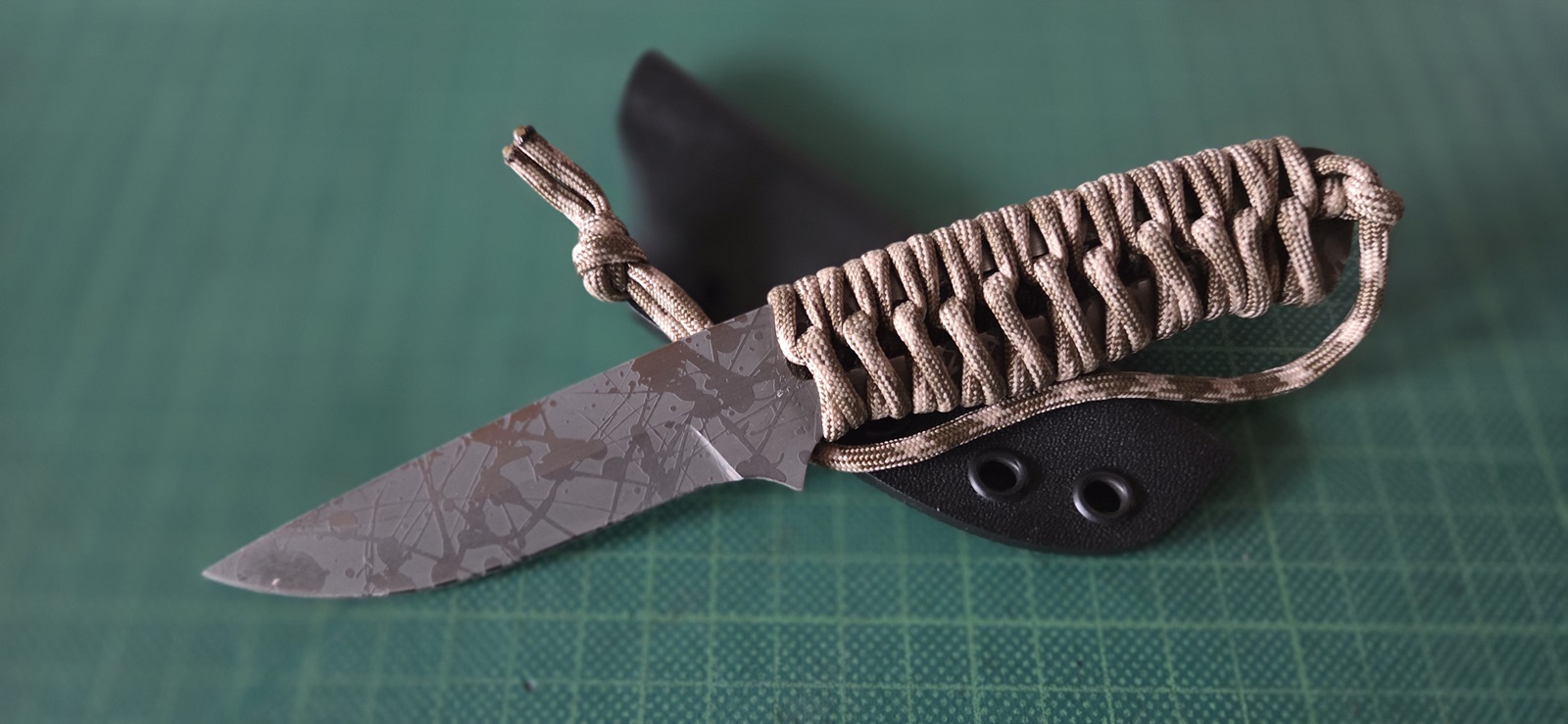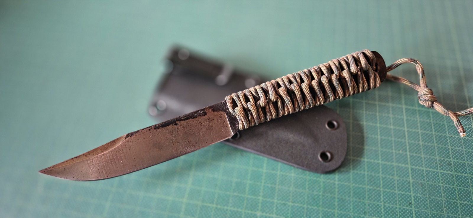 gebraucht, rostend, acid-washed, Paracordwicklung, Kydexscheide, Klinge 9,5cm, Griff 9,7cm