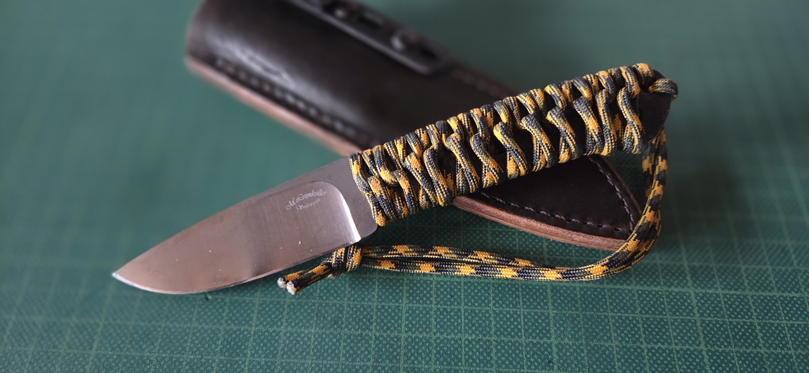 gebraucht, rostend, Paracordwicklung, Lederscheide mit Utility Clip, Klinge 8,9cm, Griff 11,4cm