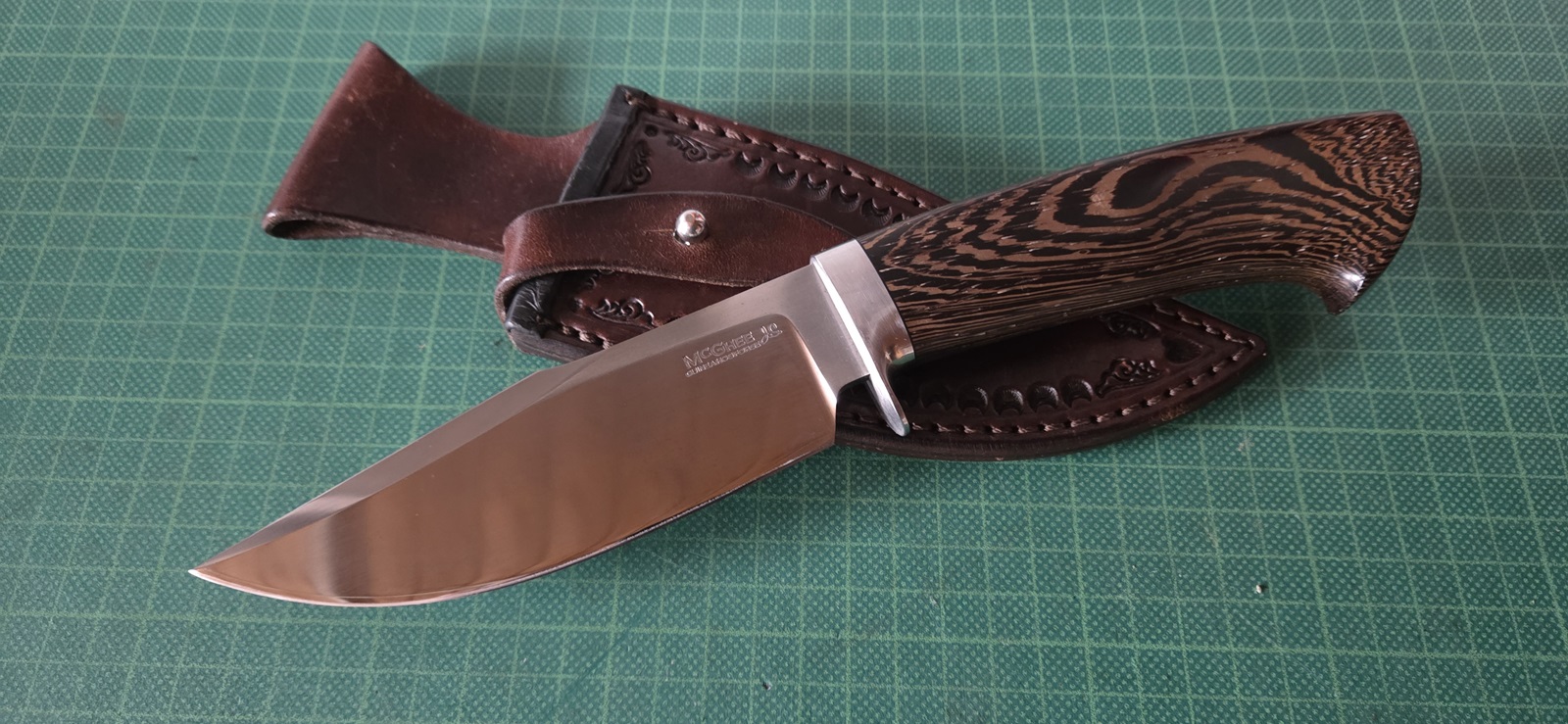 neuwertig, CPM, Micarta, Lederscheide, Klinge 21,5cm, Griff 13,4cm