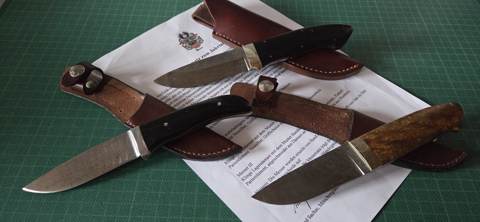 neuwertig, verschiedene Damastmuster, gschmiedet zum Ende seiner beruflichen Laufbahn