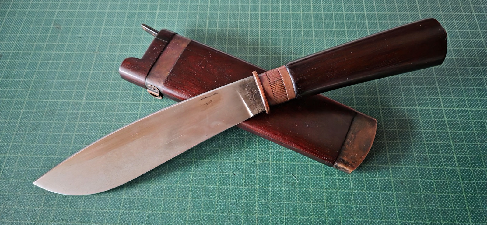 gebraucht, 1.2552, Kupfermonturen, Padouk, Padoukscheide, Klinge 18,5cm, Griff 13,7cm