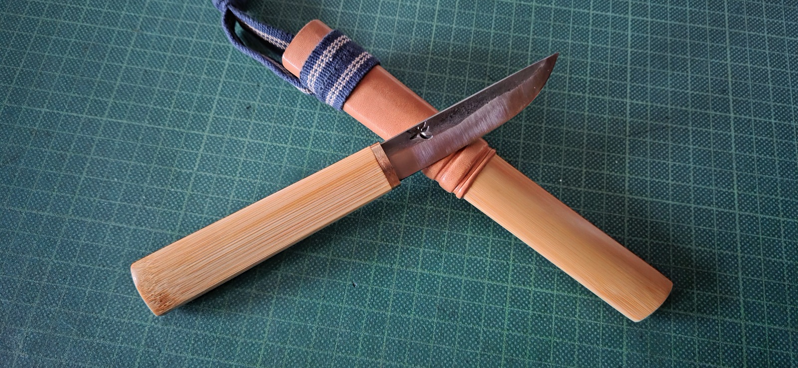 neuwertig, 145Sc (Achim Wirtz), Bambus, Messing, Klinge 8,7cm, Griff 11,5cm