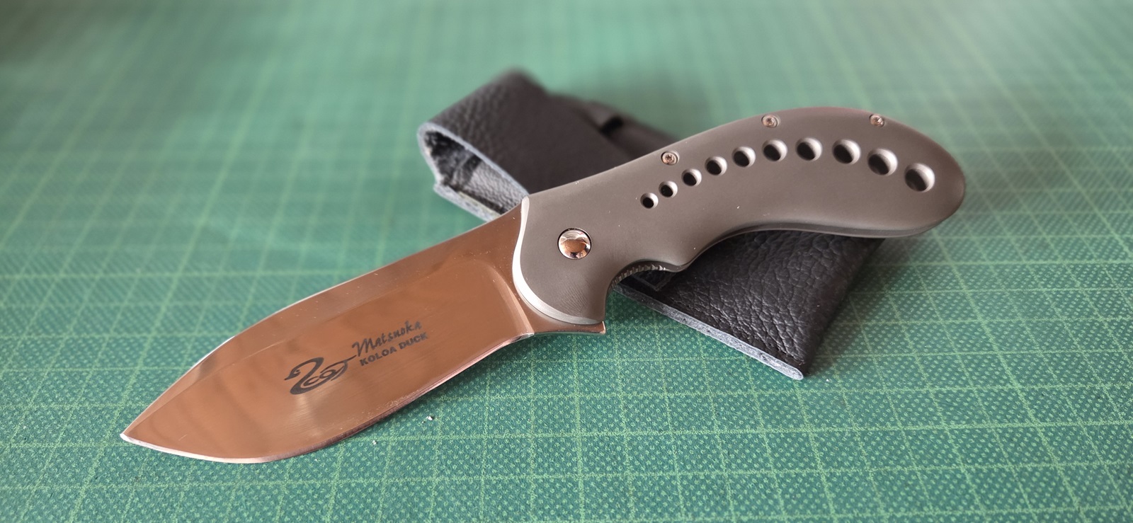 neuwertig, 1095, Hamon, Flipper, Titanframelock, Copper-Inlays, Clip, tip-up, Pouche, Klinge 9,8cm, Griff 12,8cm