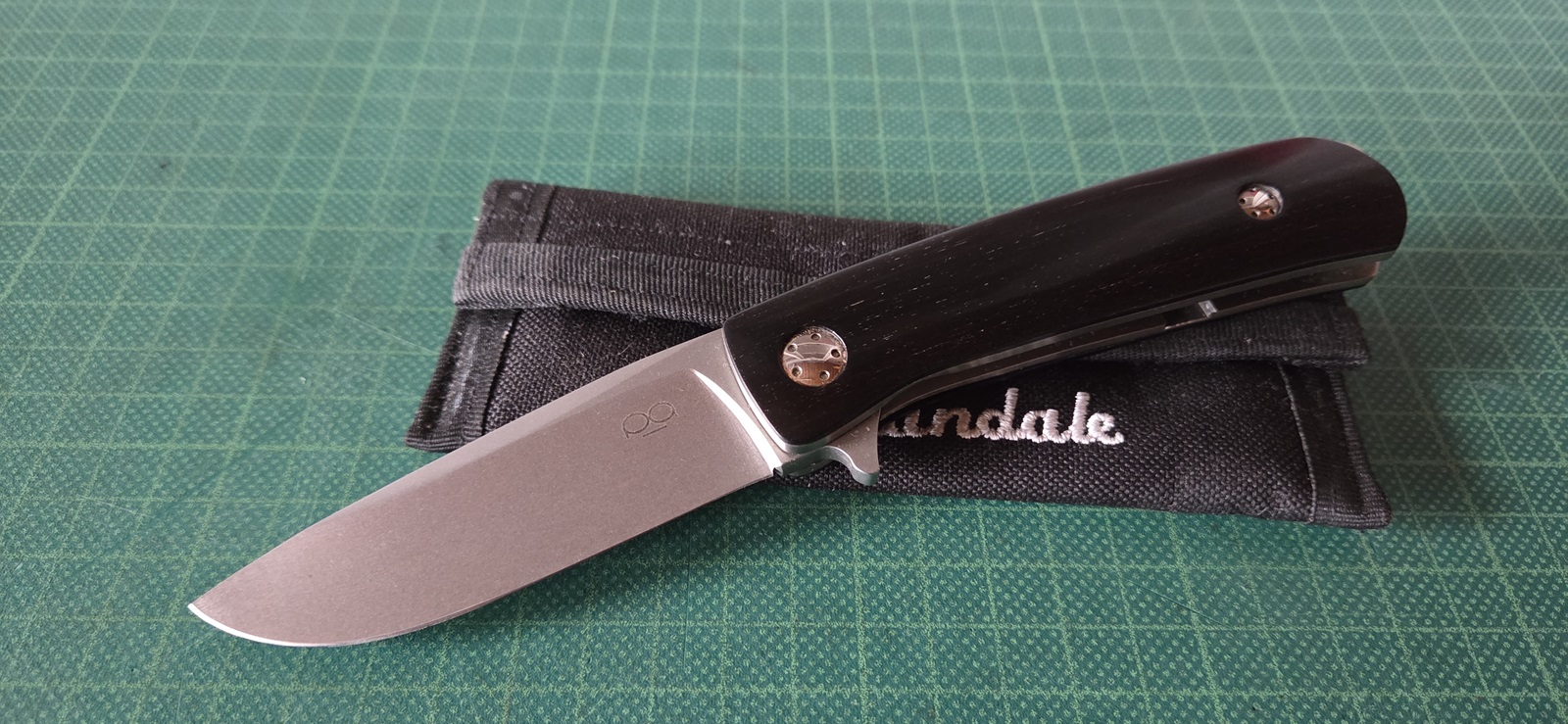 getragen, 1.2551, beschichtet, Linerlock, Ebenholzschalen, Klinge 14,8cm, Griff 17,5cm