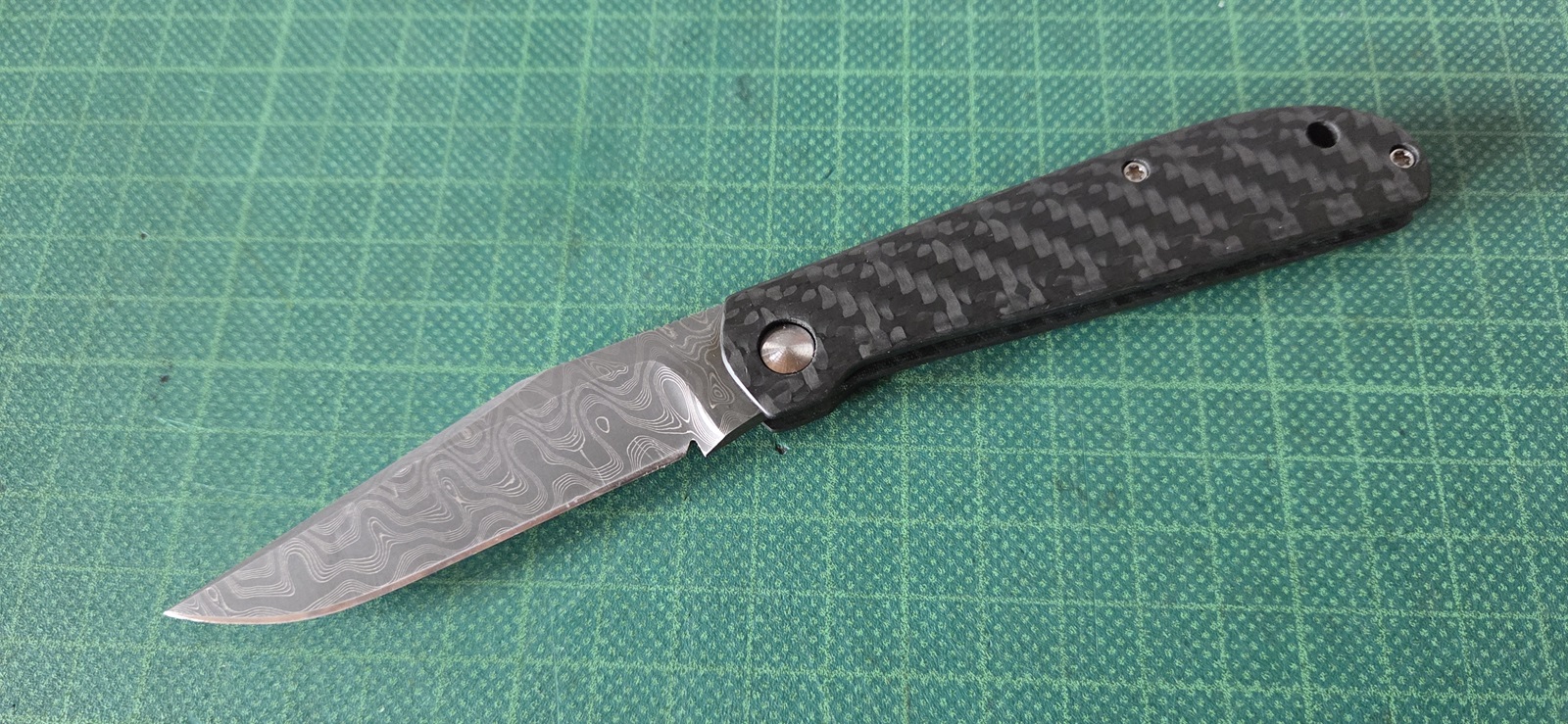 getragen, Damast, Carbonschalen, Klinge 7,9cm, Griff 10cm